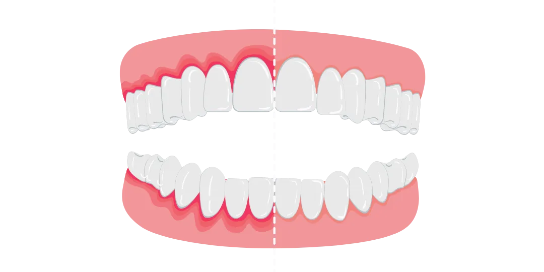 Gingivitt forekommer alltid før periodontitt. Symptomene, som er felles for begge, er rødlig og/eller hovent tannkjøtt som blør ved tannpuss eller bruk av tanntråd eller interdentalbørste, det vil si en tannbørste til bruk mellom tennene.